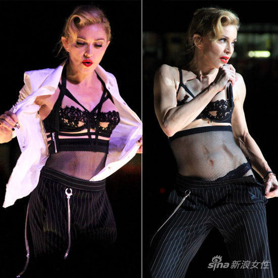 此次麥當(dāng)娜米蘭開唱,透視裝大玩性感。