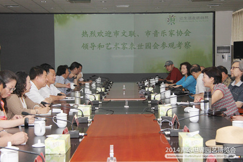 6月26日,市文聯(lián)副主席程基、市音樂(lè)家協(xié)會(huì)主席連新國(guó)帶領(lǐng)我市音樂(lè)界20余位優(yōu)秀詞曲作者深入世園會(huì)一線采風(fēng)創(chuàng)作,世園執(zhí)委會(huì)副秘書(shū)長(zhǎng)齊樹(shù)青、世園會(huì)文化總監(jiān)、新聞宣傳部和演藝活動(dòng)部與藝術(shù)家們進(jìn)行了座談交流。