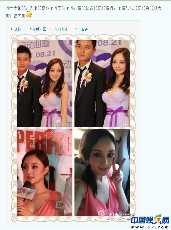 李小璐隨后在微博回應(yīng)驚悚大胸照:你們不懂。微博中說(shuō),“同一天拍的,衣服的款式不同穿法不同,懂的朋友們你們懂得,不懂亂寫(xiě)的你們真的很無(wú)聊!很無(wú)聊?!?/p>