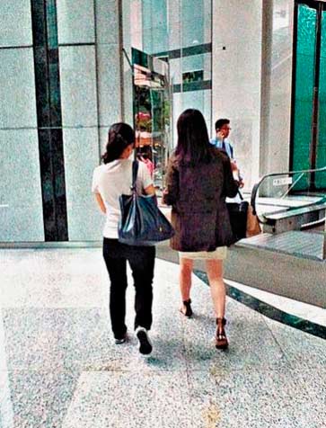 最后兩人不消1分鐘便從員工出入口離開了商場,期間記者多次表明來意,央求黎姿停下來拍張照片,雖然她面帶微笑,一臉怕丑的樣子,但她拒絕之余,還用頭發(fā)及朋友的身體來擋著自己,一直左閃右避,期間更刻意用外套來遮掩腹部,最后極速跳上座駕離開。