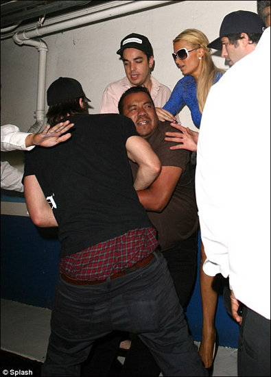 希爾頓齊臀短裙夜店尋歡 遭肥男騷擾下身走光(組圖)