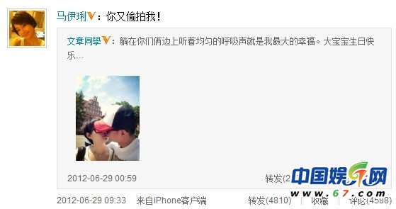 文章、馬伊琍于2008年結(jié)婚,兩人已有一個乖巧漂亮的女兒文愛馬,幸福的三口之家是娛樂圈中明星的典范。雖然前幾天文章生日馬伊琍差點(diǎn)忘記了,但是老婆的生日文章可是掐著點(diǎn)的送祝福。今天凌晨一點(diǎn)文章更新微博曬出兩人在藍(lán)天白云下甜蜜擁吻照,兩人都戴著黑框眼鏡,身穿白色T恤,休閑舒適。身為老公及老爸的文章曬幸福稱:“躺在你們倆邊上聽著均勻的呼吸聲就是我最大的幸福?!蔽恼逻€甜蜜稱呼