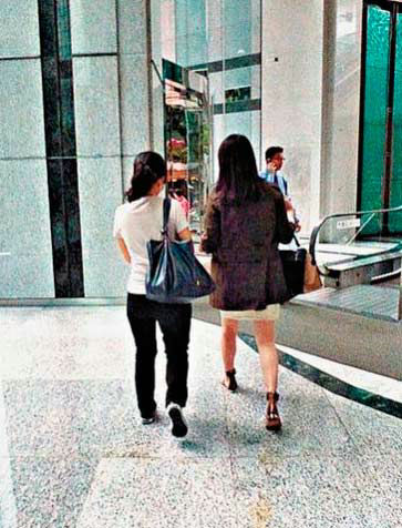 日前,黎姿又相約友人喝下午茶,一坐便坐了個(gè)半小時(shí)。黎姿當(dāng)日身穿啡色長袖褸、卡其色短裙及涼鞋,喝完茶便跟友人一同離開咖啡室。黎姿看上去比之前發(fā)脹不少,而且笑容滿面,不停跟友人有講有笑。當(dāng)她發(fā)現(xiàn)記者后,隨即返回咖啡室內(nèi),友人實(shí)時(shí)向職員打聽后門所在,經(jīng)職員指示,兩人經(jīng)洗手間旁的后樓梯離開。友人趁記者不留神,便拖著黎姿以