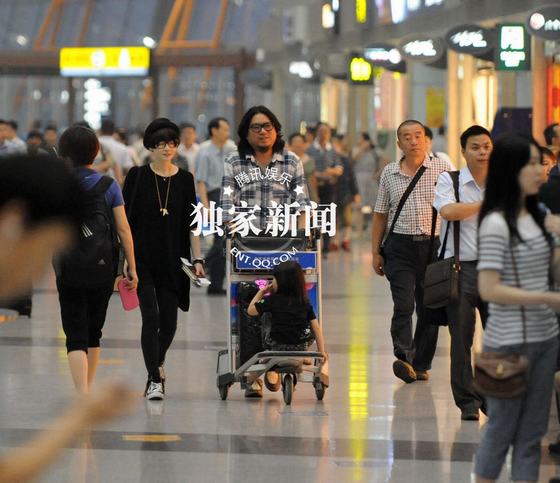 高曉松一家三口機場秀甜蜜 80后嬌妻扮潮范(組圖)