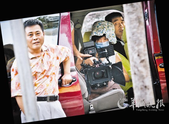 帶著滿腹狐疑,記者來(lái)到攝像機(jī)旁。羊城晚報(bào)攝影記者則留在原地,舉起相機(jī)與這伙人“對(duì)拍”。記者詢問(wèn)站在車旁一名穿橘色花襯衣、年約40歲的男子,該團(tuán)隊(duì)為何在此拍攝馬路對(duì)面的人。聽(tīng)完,車內(nèi)女子先是關(guān)上車門,隨后又打開(kāi),旁若無(wú)人地繼續(xù)拍攝。男子不理會(huì)記者的詢問(wèn),退至車頭。