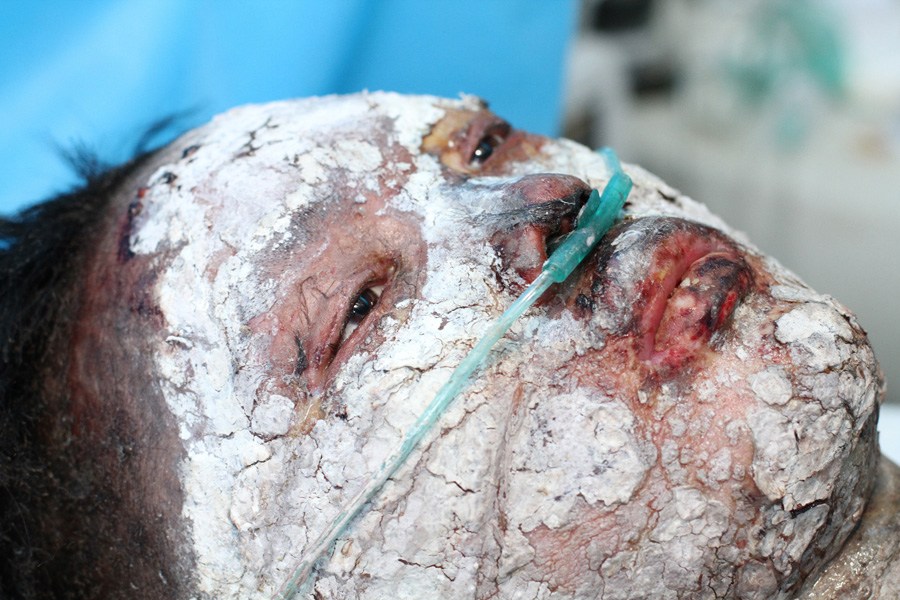 7月2日上午,商丘,寧陵縣劉樓鄉(xiāng)無咎屯村村民鄭傳營大兒子燒成重傷。