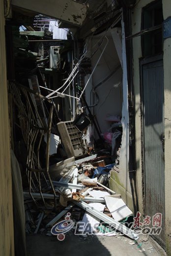 圖為事發(fā)房屋的金屬防盜和空調(diào)外機都被炸壞,墻體倒塌。