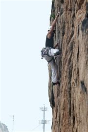 “速降運(yùn)動(dòng)源自高山探險(xiǎn)下撤保護(hù)技術(shù),青島屬丘陵地帶,加上獨(dú)特的巖石結(jié)構(gòu),因此擁有非常好的速降條件。據(jù)我目前所知,浮山、嶗山仰口、膠州艾山、靈山島的老虎嘴,都有非常好的速降點(diǎn)。 ”王國(guó)明說(shuō),他在去年一次速降運(yùn)動(dòng)中認(rèn)識(shí)了貓王,從此結(jié)下了不解之緣, “玩極限運(yùn)動(dòng)的人都很直爽,大家都是熱愛生命、喜歡挑戰(zhàn)、喜歡融入大自然?!蓖鯂?guó)明說(shuō),他經(jīng)常跟孩子講英國(guó)登山家喬治·馬洛里的名言,上世紀(jì)20年代初,英國(guó)登山家喬治·馬洛里在紐約作巡回演講時(shí),記者問(wèn):“你為什么要攀登珠穆朗瑪峰? ”馬洛里不假思索地回答: “因?yàn)樯骄驮谀抢铩?”王國(guó)明希望孩子從速降中學(xué)會(huì)做事的道理,只要從高處開始下降,就無(wú)法退縮,人就必須克服恐懼與障礙、堅(jiān)持到底,從自我激勵(lì)到超越自我,最終走向成功。 (記者 徐棟 攝影 于滈)