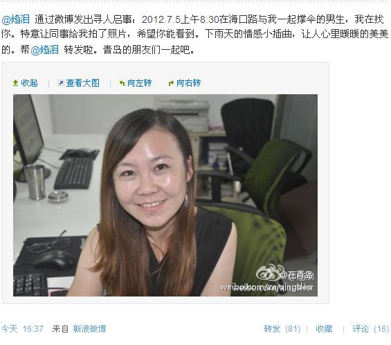 @悠客:1992年8月幾號,晚7點半左右,雨夜,中山公園正門西側(cè)。與我雨中嬉笑一起狂奔過馬路的女孩,突然我也想找