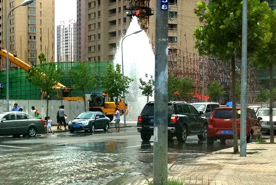 記者看到,搶險(xiǎn)人員已經(jīng)趕到現(xiàn)場(chǎng),但似乎尚未找到對(duì)策。附近有居民開(kāi)車(chē)過(guò)來(lái)洗車(chē),小朋友也過(guò)來(lái)戲水,場(chǎng)面十分熱鬧。(本網(wǎng)記者)
