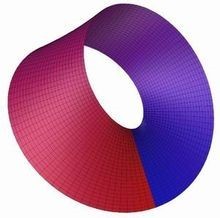麥比烏斯圈是一種單側、不可定向的曲面。因A.F.麥比烏斯(August Ferdinand M??bius, 1790-1868)發(fā)現(xiàn)而得名。將一個長方形紙條