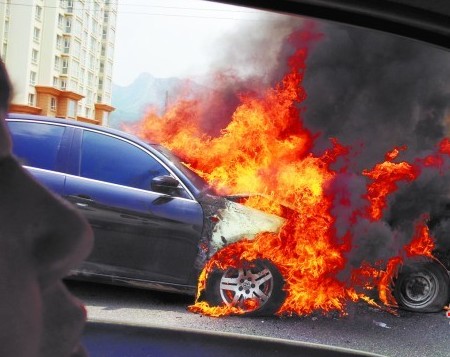 ????目擊者宋先生告訴記者:“最后面的黑色大眾寶來轎車撞到小卡車后,司機很快跑了下來,不到一分鐘,轎車就冒起煙,然后‘轟’地一下冒起火來了?;饎莺艽?,火焰差不多把后面兩輛車都包圍了,濃煙有三四層樓那么高。寶來車前引擎蓋被撞開,兩輛車的車胎都癟了?!彼蜗壬貞浄Q,事發(fā)當時地表溫度有三四十攝氏度,大火堆里不時傳來“噼里啪啦”的爆炸聲。
