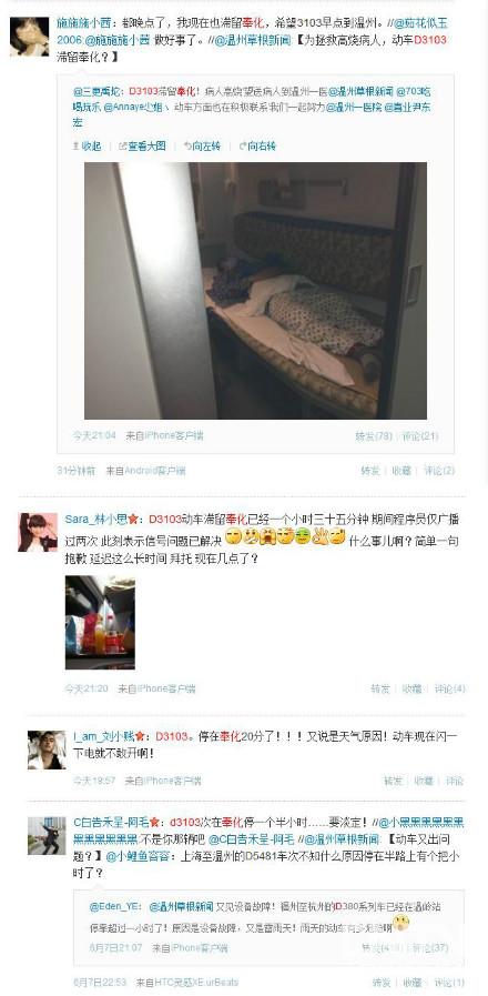網(wǎng)友微博反映多列動車滯留途中(來源:網(wǎng)絡(luò))