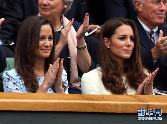 7月8日,英國凱特王妃(右)和妹妹皮帕·米德爾頓在看臺上觀看比賽。當(dāng)日,在2012年溫布爾登網(wǎng)球公開賽男單決賽中,瑞士選手費德勒對陣英國選手默里。