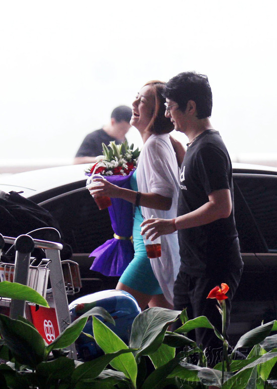 鄭鈞捧玫瑰接機(jī)玩浪漫 妻子劉蕓驚喜送擁抱(組圖)