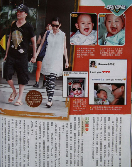 鄭中基余思敏牽手逛街 新晉奶爸曬女兒照片(圖)