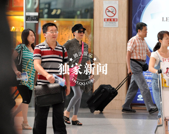 51歲蔡明波點(diǎn)連衣裙扮潮 黑超遮面低調(diào)離京(組圖)