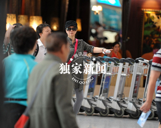 51歲蔡明波點連衣裙扮潮 黑超遮面低調(diào)離京(組圖)