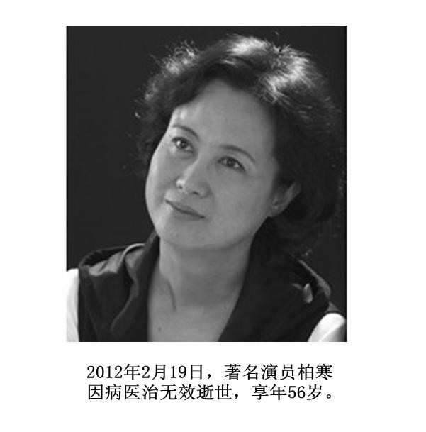 著名演員柏寒,因病醫(yī)治無效于2012年2月19曰21時57分逝世,享年56歲。曾因電影電視劇《媳婦的美好時代》獲第16屆上海電視節(jié)“白玉蘭獎”最佳女主角獎,塑造過電視劇《永不放棄》、電影《為奴隸的母親》話劇《紅塵》等作品中的經(jīng)典母親形象,被譽為“熒屏母親專業(yè)戶”。