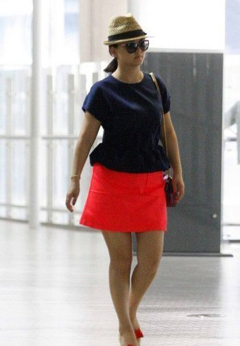 李湘紅藍潮裝扮嫩 抱臂而行“女王”范十足