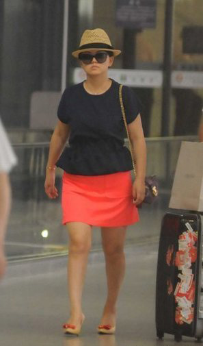 李湘紅藍潮裝扮嫩 抱臂而行“女王”范十足