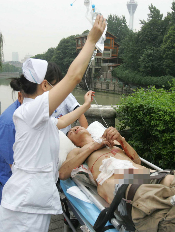 記者在現(xiàn)場看到,錦江河堤小路旁綠化帶草地上散落著三個空酒瓶和一些鹵菜,樹枝上還掛著一件灰色衣服。目擊者曾先生說,上午10時左右,他經(jīng)過這名男子身邊時,以為是醉漢,就徑直朝前走。不料突然聽到有人喊:“哎呀!腸子都出來了。”“他沒有穿上衣,褲子也脫去了一半……”曾先生一回頭,發(fā)現(xiàn)情況不妙,趕緊報警。