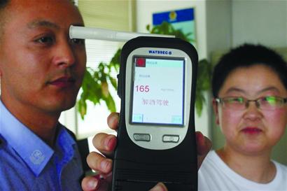 昨天下午,記者來到市南交警大隊香港西路中隊,隊長遲龍拿出警用酒精測試儀協(xié)助記者測試。隨記者同行的還有5名志愿者,記者打開1瓶300毫升酸梅湯飲品,1號志愿者一口氣喝下約200毫升,然后立即呼氣檢測?!?00毫升酒精含量為0毫克。”遲龍說,根據(jù)測試結果,喝酸梅湯飲品不存在被檢測為酒后駕駛的情況,說明這瓶酸梅湯里不含酒