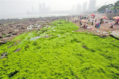 “目前我市設(shè)置了2萬(wàn)多米的海上攔截網(wǎng),組織打撈船出海打撈滸苔,對(duì)上岸滸苔實(shí)施清理。從目前來(lái)看,這些措施效果很好,滸苔今年給青島帶來(lái)的影響減到了很小?!鼻鄭u市海洋與漁業(yè)局副局長(zhǎng)王淑蓮告訴記者。
