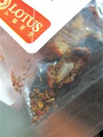 據(jù)孫先生介紹,昨天他到卜蜂蓮花超市買了包密封裝的山楂干,回家后立即沖泡,不想水剛剛倒入水杯中,一件意想不到的 “贈品”就浮上了水面。