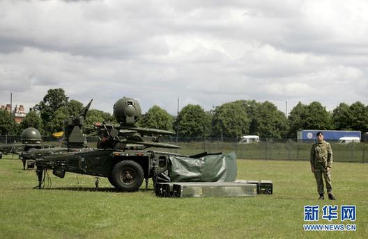 7月12日起,英國軍方開始在倫敦奧運會場館周邊安裝地對空導(dǎo)彈,以應(yīng)對倫敦奧運會可能突發(fā)的安全問題。這是軍方安置在倫敦布萊克希思科門的地對空導(dǎo)彈(7月13日攝)。