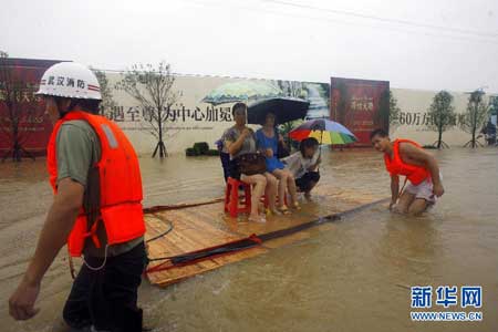 武漢遭暴雨襲擊可看海 車變船行駛深水中(圖)