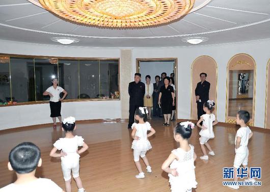 這張朝中社7月15日提供的照片顯示,7月14日,朝鮮國(guó)家最高領(lǐng)導(dǎo)人金正恩在平壤慶上幼兒園視察。 14日,金正恩視察了平壤市慶上幼兒園。他來(lái)到綜合戲玩場(chǎng)、運(yùn)動(dòng)室、鋼琴教室、戲水池等地觀看孩子們的嬉戲和學(xué)習(xí),強(qiáng)調(diào)啟發(fā)學(xué)齡前兒童的智能的重要性,并對(duì)幼兒園園長(zhǎng)的工作方法和態(tài)度給予表?yè)P(yáng)并強(qiáng)調(diào)值得推廣。金正恩還觀看了慶上幼兒園兒童表演的節(jié)目