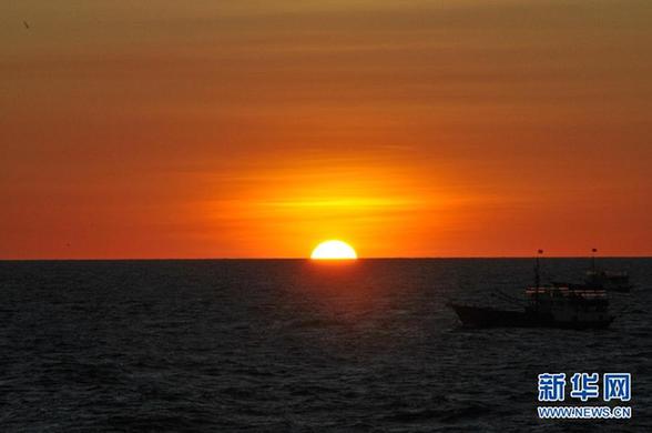 南海上的日落(7月13日攝)。