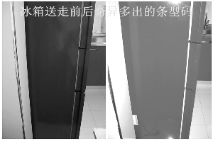 ????這時(shí)候,劉小姐想起了當(dāng)時(shí)拍的照片。對(duì)比發(fā)現(xiàn),在同一角度的情況下,返修后冰箱的右側(cè)腰部,確實(shí)多了一道條形碼,之前標(biāo)記的長方形圖案也莫名地消失了。