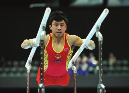 鄒凱在雙杠比賽中