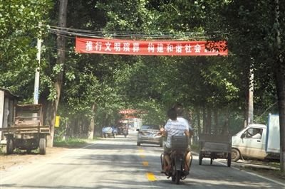 商水縣公路上掛著關(guān)于文明殯葬的條幅。
