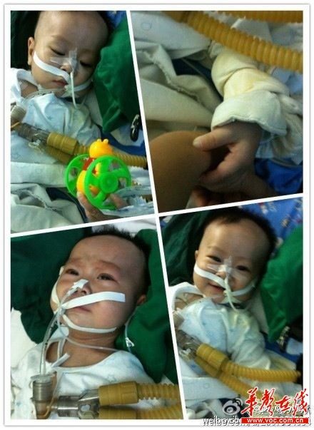 (每天靠呼吸機(jī)維系生命的小翔寶 微博截圖)