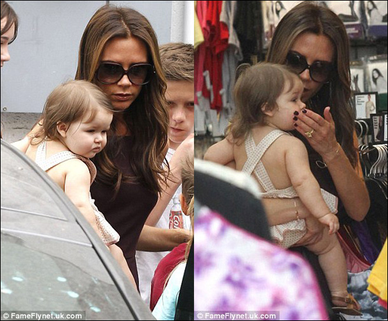 貝嫂維多利亞攜子女出行 小七肥嘟嘟可愛