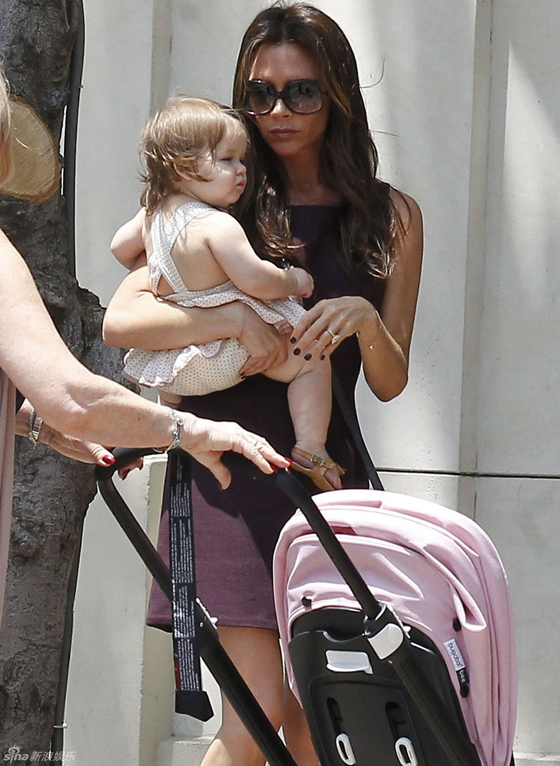 貝嫂維多利亞攜子女出行 小七肥嘟嘟可愛