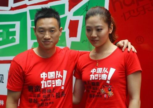 ????昨日下午,奧運冠軍楊威/楊云夫婦現(xiàn)身武漢王家灣摩爾城,為“快樂購”奧運助威活動武漢站啟動儀式加油助陣。活動間隙,二人接受了本報記者的專訪。論奧運、談工作、聊生活,身著大紅色情侶衫的夫妻倆默契而健談。