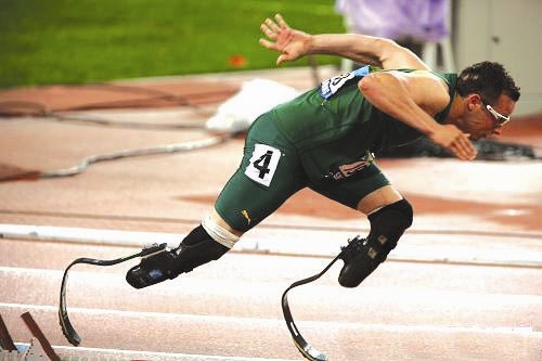 ????25歲的皮斯托瑞斯在11個月大時就被截去了膝蓋以下部位。在8年前的2004年,他安裝上了刀鋒形狀的高科技碳纖維假肢參加殘運會比賽,也因此而得名“刀鋒戰(zhàn)士”。今年3月的一場南非測試賽中,皮斯托瑞斯在400米比賽中跑出了45秒20的好成績,首次達到45秒30的奧運A標,最終獲得了參加奧運會的資格。