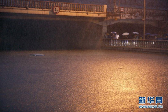 7月21日,在北京市蓮花橋,一輛汽車即將被雨水淹沒。新華社發(fā)