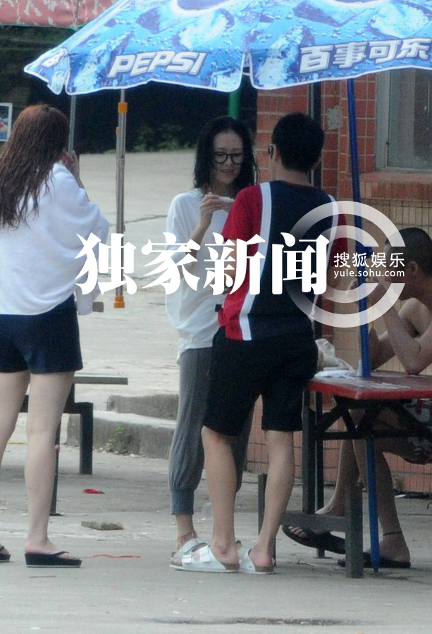 章子怡素顏與型男打球表情怪異 拍戲生活愜意(組圖)