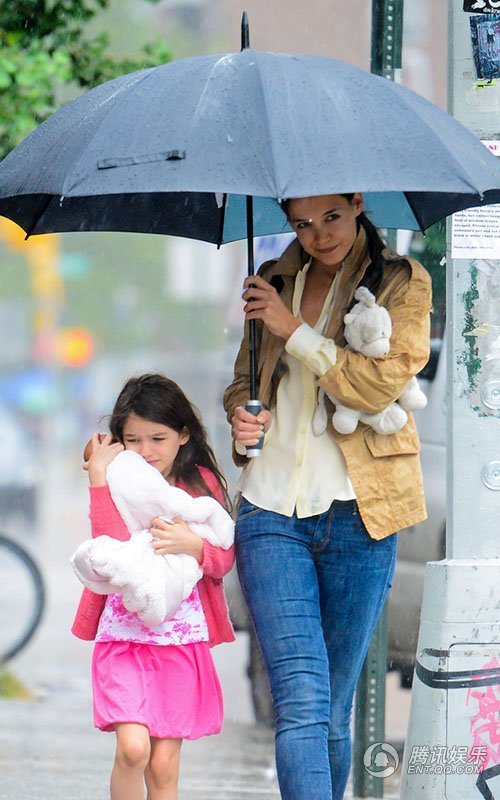 凱蒂帶小蘇瑞雨中漫步 母女同行親密溫馨(組圖)
