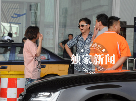 朱軍與妻子現(xiàn)身機(jī)場夫唱婦隨