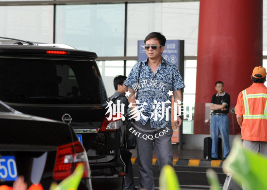 朱軍機場抽煙黑臉似大牌 42歲妻子譚梅苗條依舊(組圖)