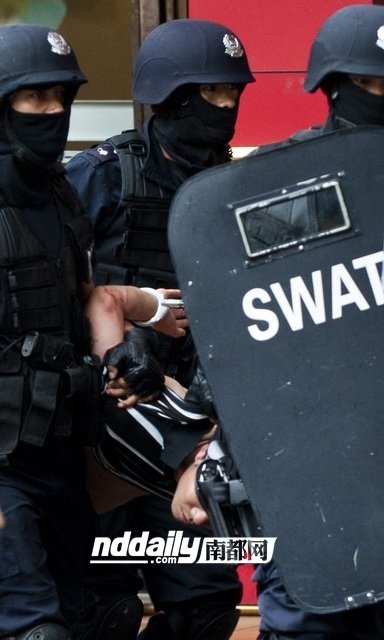 莞城公安分局的大批民警很快趕至現(xiàn)場,并封鎖了向陽路,而后特警也趕來增援。由于在鬧市區(qū),圍觀者眾多,臨近下班,造成附近大塞車。