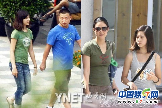 右圖為姜文現(xiàn)任妻子周韻和女兒姜一郎。