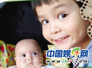 陳露的一雙混血兒女。女兒好呆好萌。