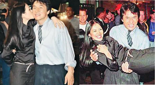 2001年,成龍與章子怡合作《尖鋒時(shí)刻》,媒體爆出章子怡在成龍生日宴上獻(xiàn)吻、坐大腿和喂提子的永恒照片,緋聞傳遍坊間。然而成龍大哥兇猛一抱還是最為驚艷。成龍過47歲生日時(shí),章子怡不止送上香吻,還坐在成龍大腿上,喂他吃水果、喝他喝過的礦泉水。而且成龍每拍完一個(gè)鏡頭大汗淋漓,章子怡立刻上前替成龍擦汗,關(guān)系甚是親昵。據(jù)說成龍?jiān)谏债?dāng)天,還抱起章子怡說:“她是我的生日禮物。”